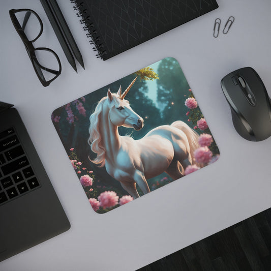 Tapis de Souris Licorne Blanche Jardin Enchanté et Fleurs Roses Idée cadeau
