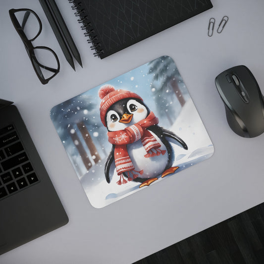 Tapis de Souris Pingouin Hiver Pingouin Mignon avec Bonnet et Écharpe dans la Neige Idée cadeau