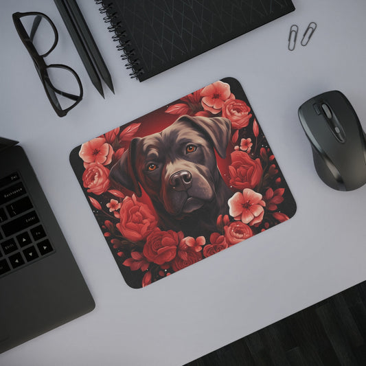 Tapis de Souris Chien Noble Fleur Rouge Illustration Élégante et Symbolique Accessoire Bureau Canin Chic et Puissant