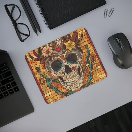 Tapis de Souris Crâne Mosaïque Fleurie Design Bohème et Géométrique Accessoire Bureau Coloré et Mystique