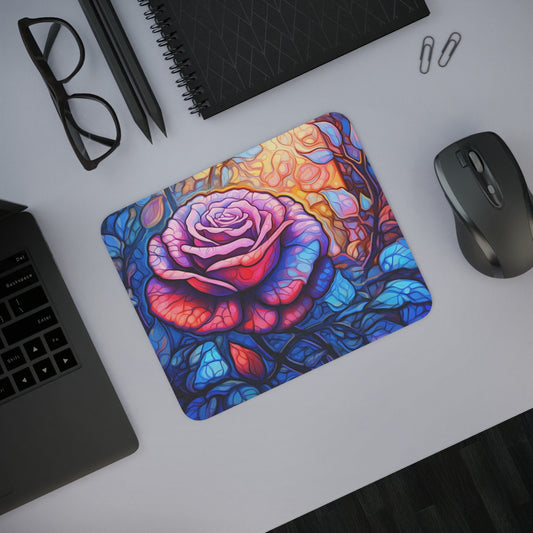Tapis de Souris Rose Artistique 22x18cm Style Vitrail Coloré et Romantique Idée cadeau bureau
