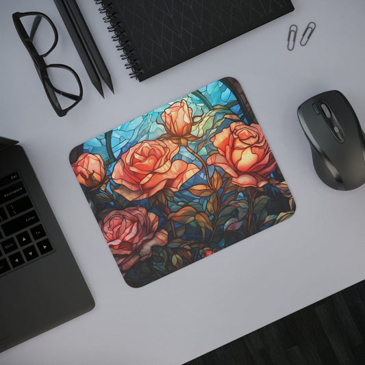 Tapis de Souris 22x18cm Vitrail Roses Élégance Florale Artistique et Lumineuse Idée cadeau