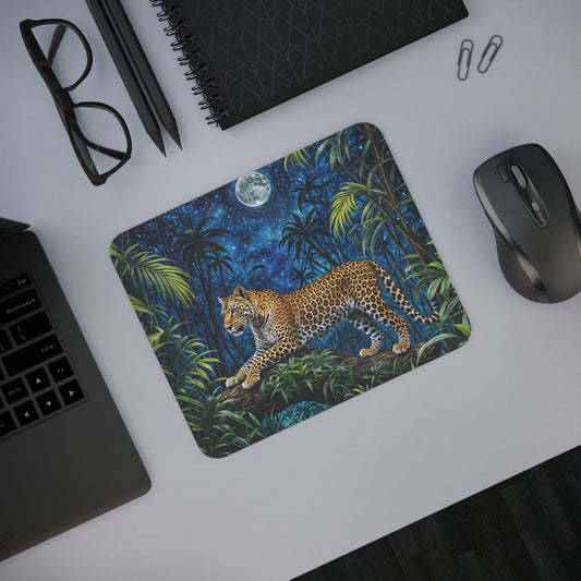 Tapis de Souris Léopard Nocturne Jungle Sous la Lune Tapis Gaming et Bureau Antidérapant Illustration Animale Puissante