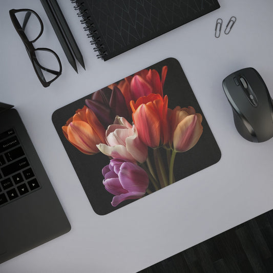 Tapis de Souris Tulipes Élégantes Bouquet Floral Réaliste Fleurs Colorées sur Fond Noir Accessoire Bureau