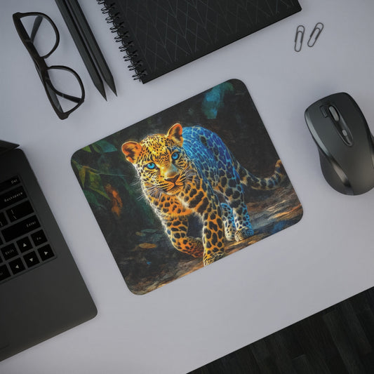 Tapis de souris 22x18 cm Léopard Artistique aux Yeux Bleus – Style Peinture Numérique