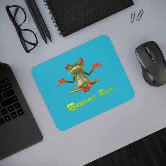 Tapis de souris 22x18 cm – Grenouille Zen sur Fond Bleu – « Soyons Zen » –