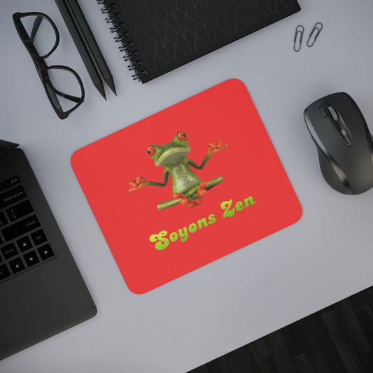 Tapis de souris 22x18 cm – Grenouille Zen sur Fond Rouge – « Soyons Zen » – Design Original