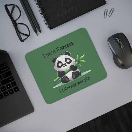 Tapis de souris 22x18 cm – Panda Mignon & Message Drôle – « I Love Pandas – I Tolerate People »