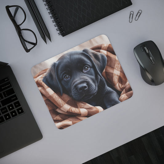 Tapis de souris 22x18 cm – Chiot Noir Blotti dans une Couverture