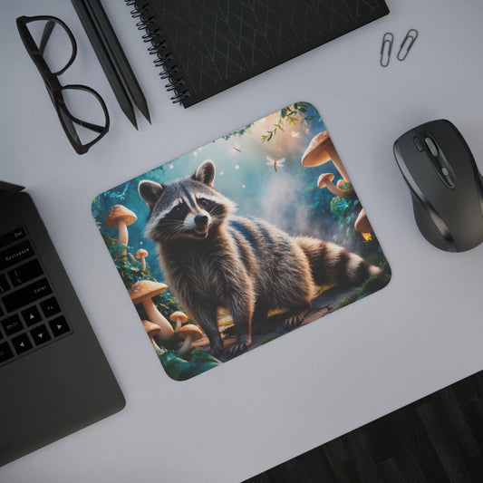 Tapis de souris 22x18 cm – Raton Laveur Forêt Enchantée – Illustration Fantastique RéalistE