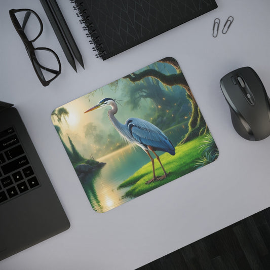 Tapis de souris 22x18 cm Héron au Bord du Lac Illustration Nature Enchantée Surface Lisse, Base Antidérapante