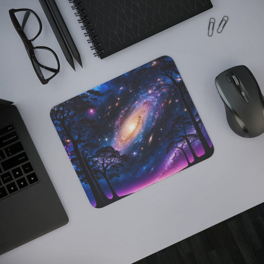 Tapis de souris 22x18 cm – Galaxie Fantastique & Forêt Nocturne – Illustration Cosmique