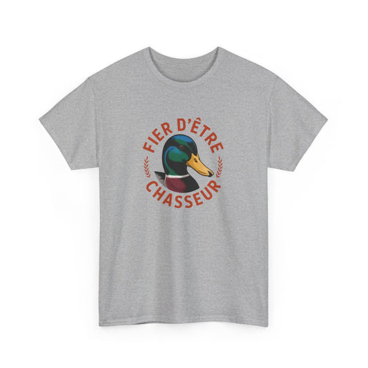 T-shirt Fier d’Être Chasseur – Visuel Canard Colvert – Style Nature Gibier – Modèle Blanc ou Gris