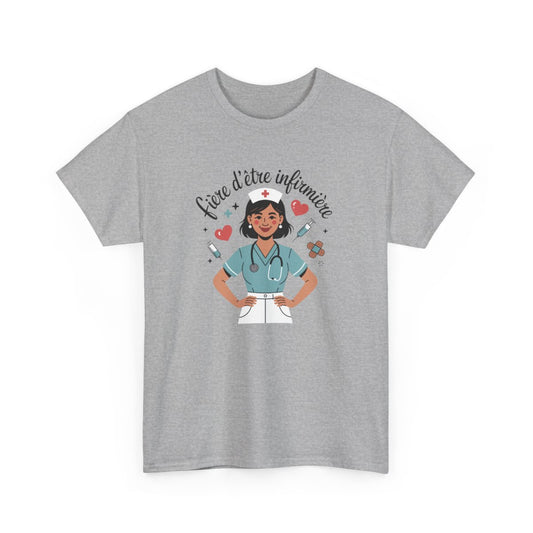 T-shirt Infirmière Femme – "Fière d’être Infirmière" – Tee-Shirt Blanc Gris Hôpital Santé Unisexe S à 3XL
