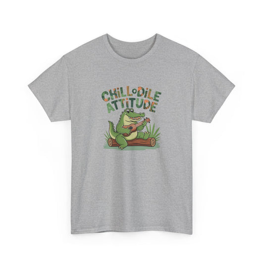 T-shirt Chillodile Attitude détente jungle blanc ou gris humour animal amusant crocodile
