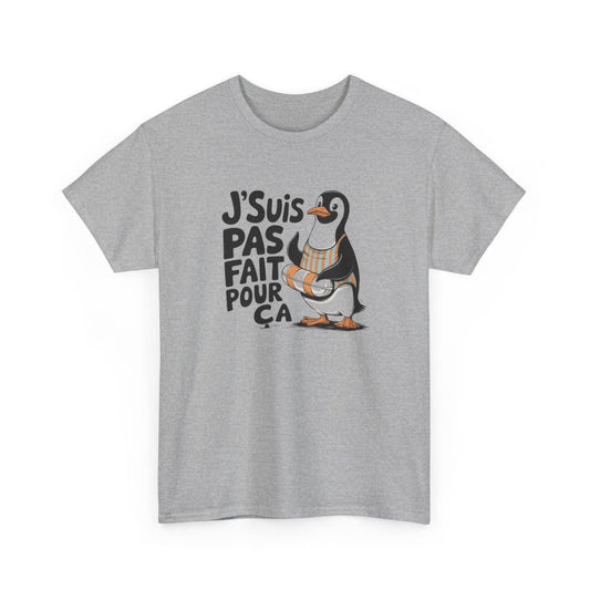 T shirt Pingouin Humour J’suis Pas Fait Pour Ça Sarcastique Animal Rigolo Blanc Gris