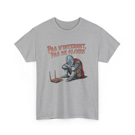 T shirt Chevalier Geek Pas d’Internet, Pas de Gloire Humour Médiéval Déconnecté Blanc Noir Gris tee shirt