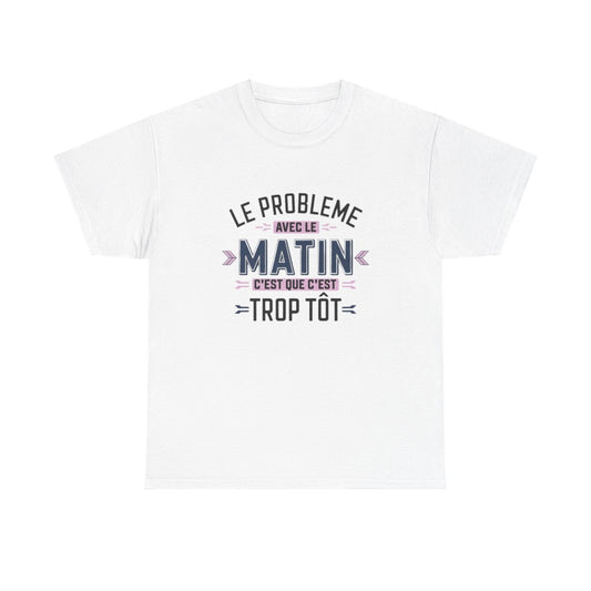 T-Shirt Humour Matin – Le Problème avec le Matin, C’est que c’est Trop Tôt – Cadeau Rigolo – Coton Premium