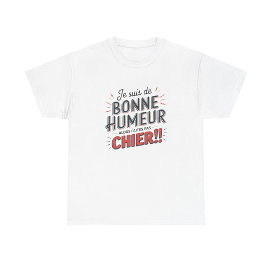 T-Shirt Humour Sarcastique – "Je suis de Bonne Humeur, alors Faites Pas Chier" – Cadeau Drôle – Coton Premium