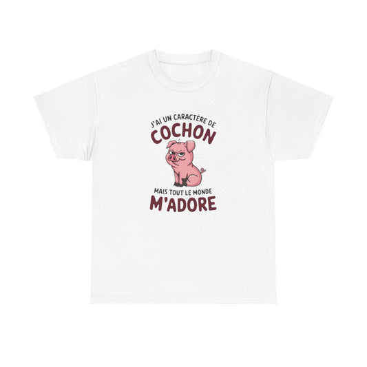 T Shirt Humour – J’ai un Caractère de Cochon, mais Tout le Monde M’adore – Cadeau Drôle Rigolo – Coton Premium