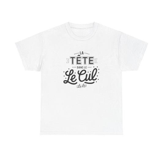 Tee shirt Humour "La Tête dans le " – Unisexe – Blanc & Gris T shirt Amusant Drôle