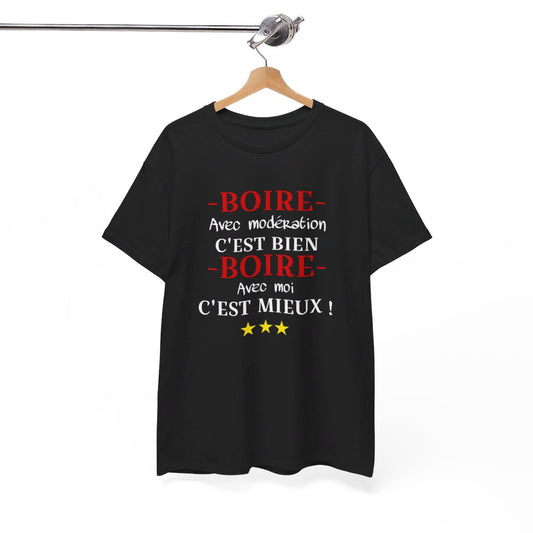 T shirt humour Boire avec modération c'est bien Boire avec moi c'est mieux ! idée cadeau amusant drôle pour Homme et Femme
