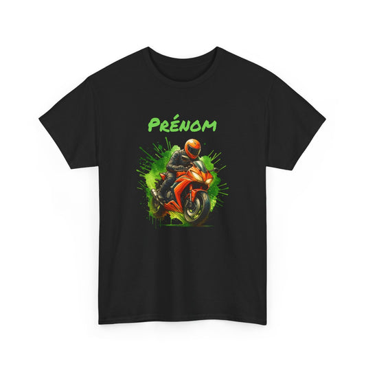 T-shirt Moto Homme Personnalisé – Tee-shirt Motard avec Prénom – Cadeau Biker Moto Racing Orange Unique