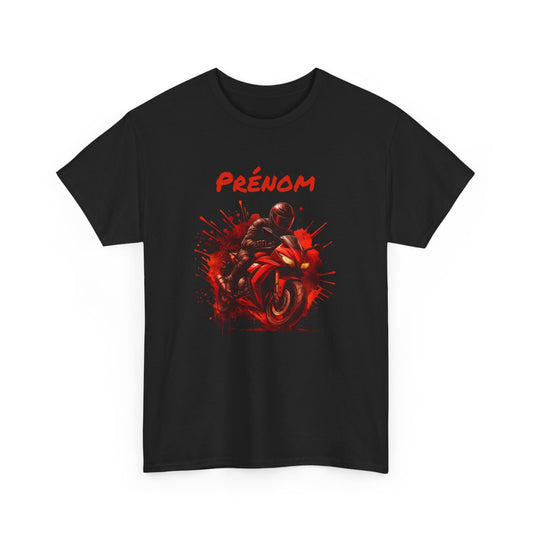 T-shirt Moto Homme Personnalisé – Tee-shirt Motard Rouge avec Prénom – Cadeau Biker Racing Feu Unique