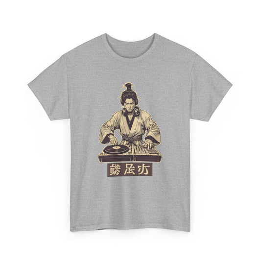 T-shirt Samouraï DJ Unisexe – Tee-shirt Japon Musique Streetwear – Blanc ou Gris – Cadeau Culture Hip-Hop Nippon