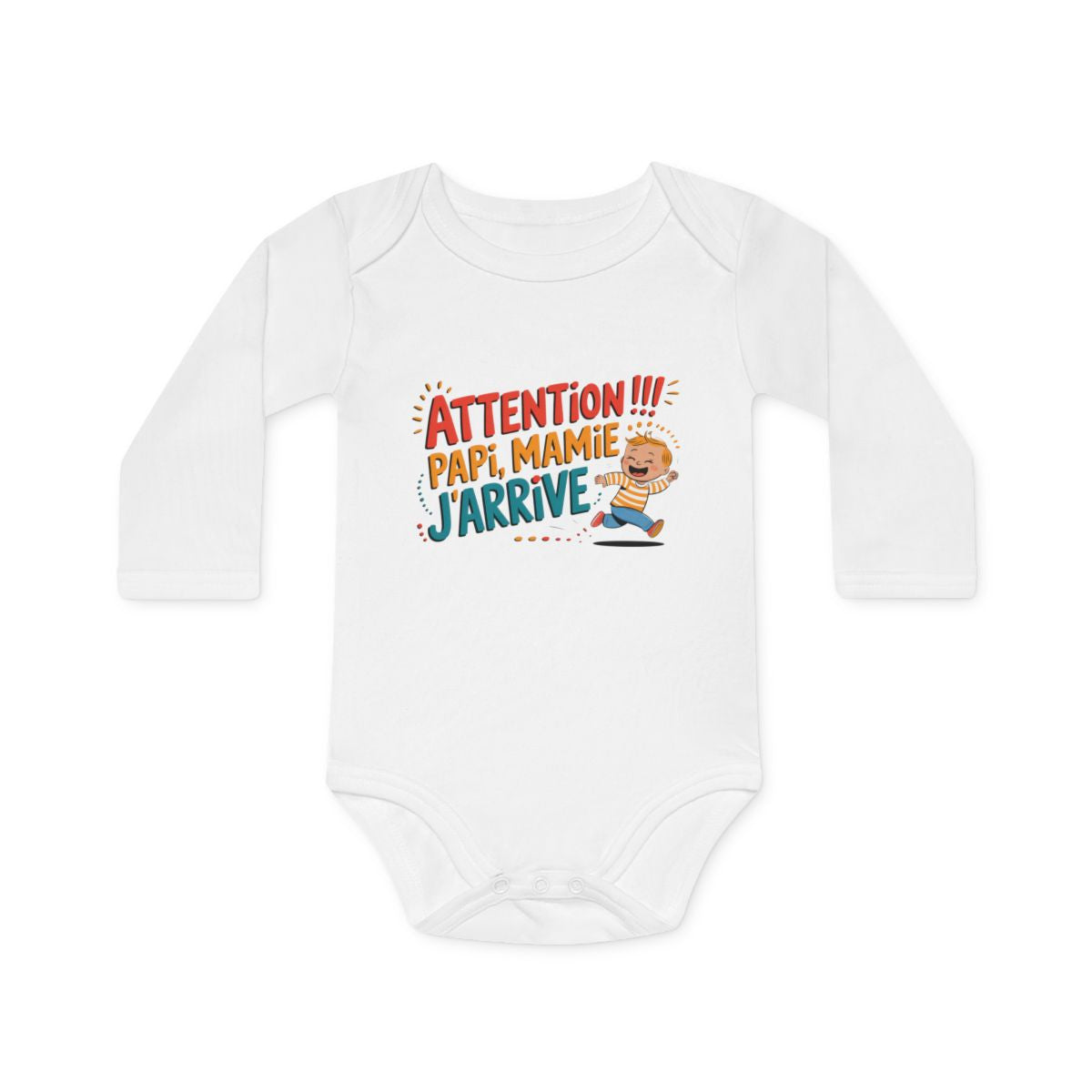 Body Bébé "Attention Papi, Mamie J’arrive" - 100% Coton - Blanc - 0 à 18 Mois idée cadeau amusant nouveau né