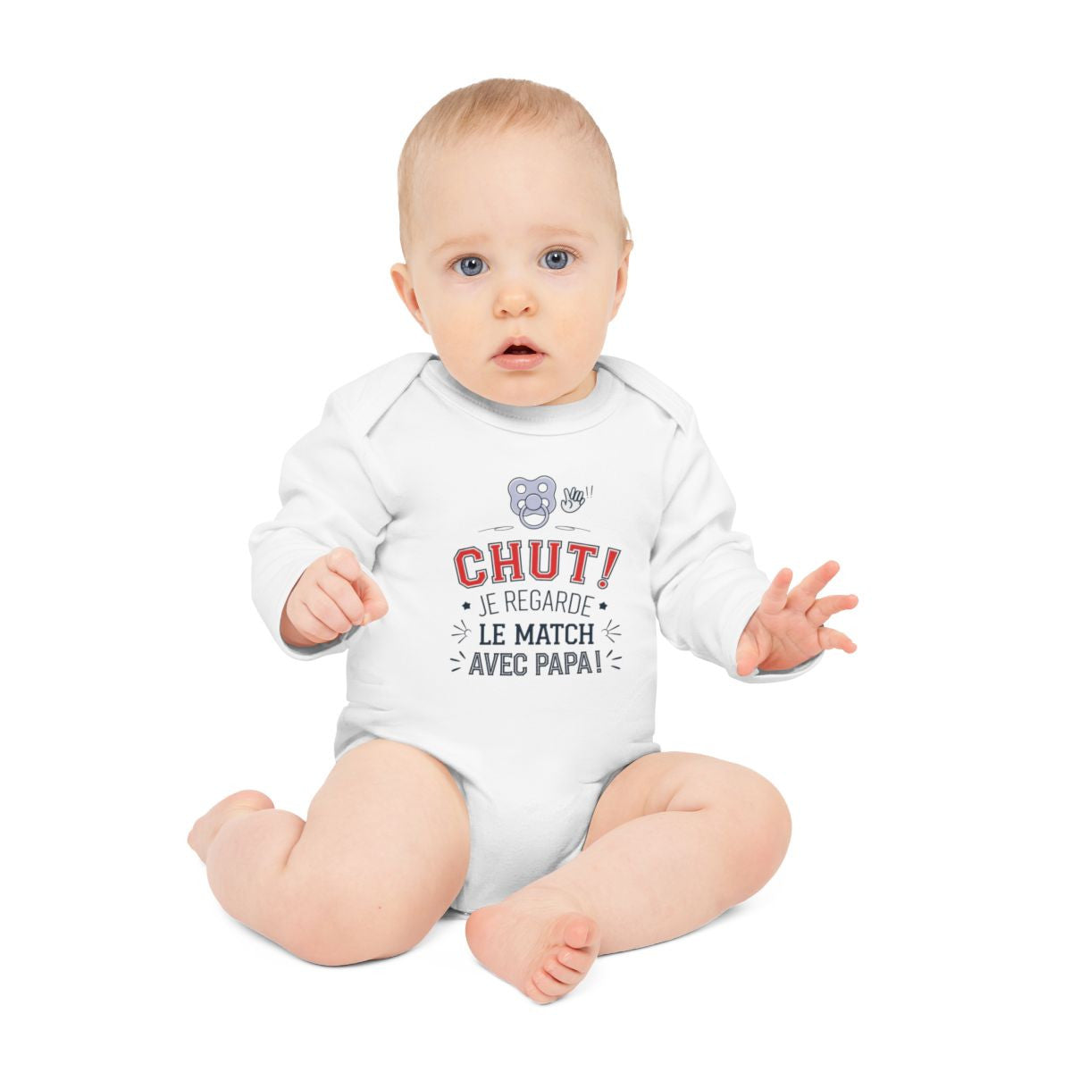 Body bébé "Chut! Je regarde le match avec papa" - 100% coton