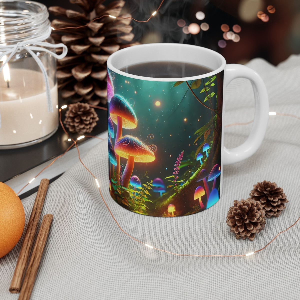 Mug Champignons Lumineux Forêt Magique Art Fantastique Fluorescent, Scène Enchantée Colorée Cadeau Nature