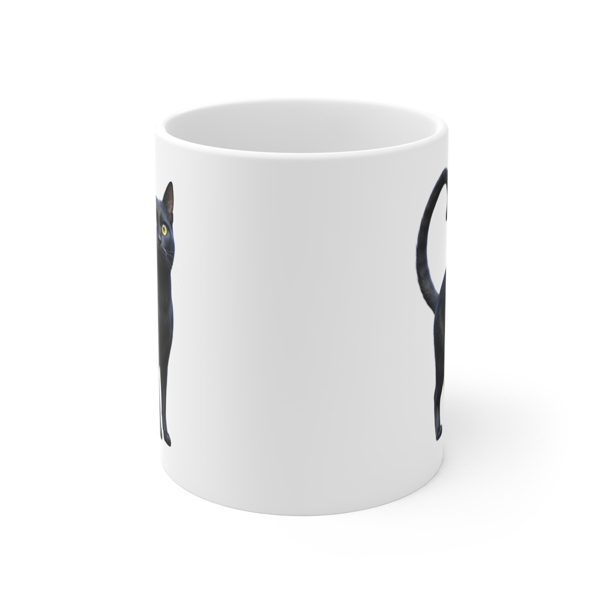 Mug Chat Noir Élégant – Tasse Céramique Chat Réaliste aux Yeux Verts – Cadeau Amoureux des Chats 325ml