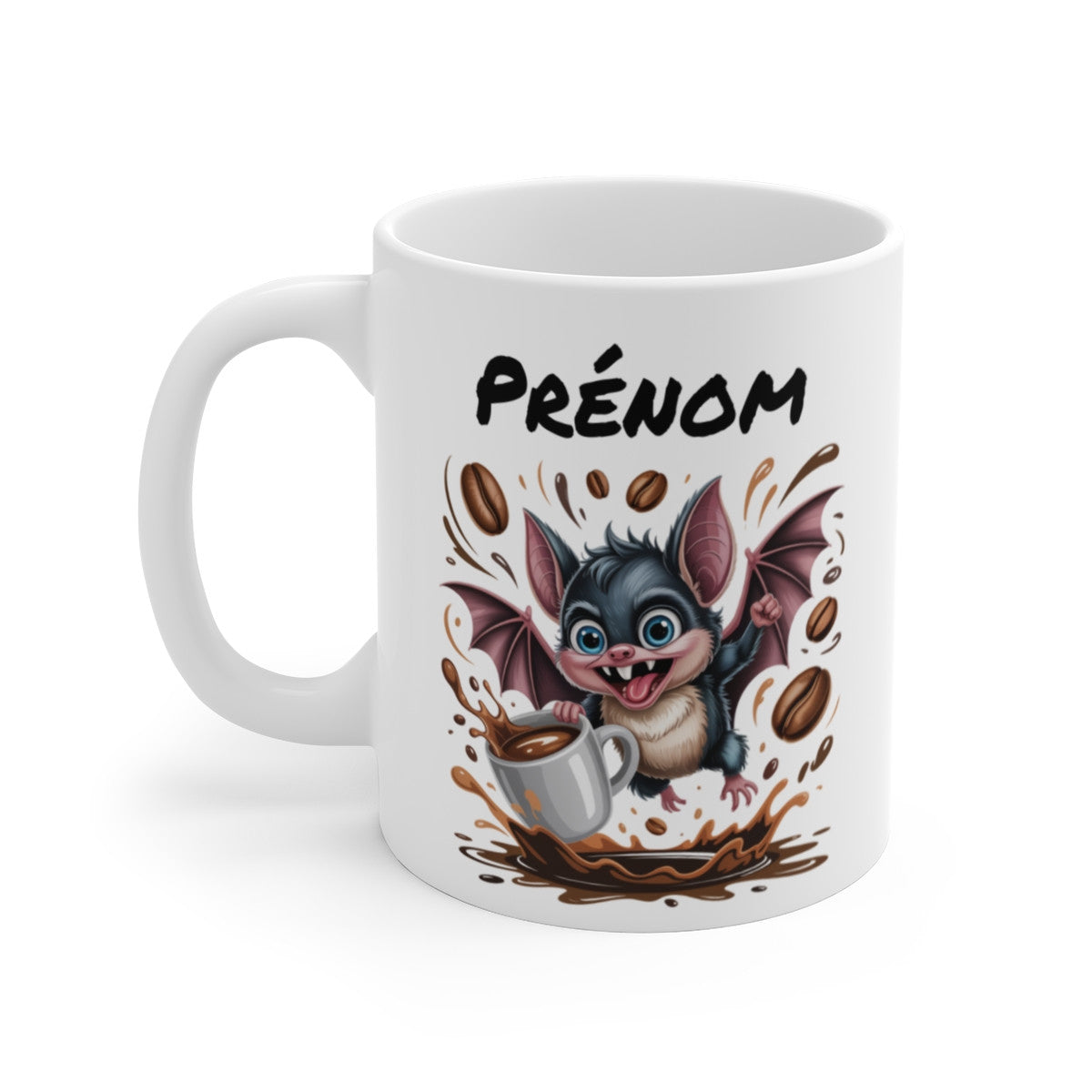 Mug Chauve-Souris Personnalisé avec Prénom – Tasse Café Drôle et Mignonne – Cadeau Original Animal Nocturne