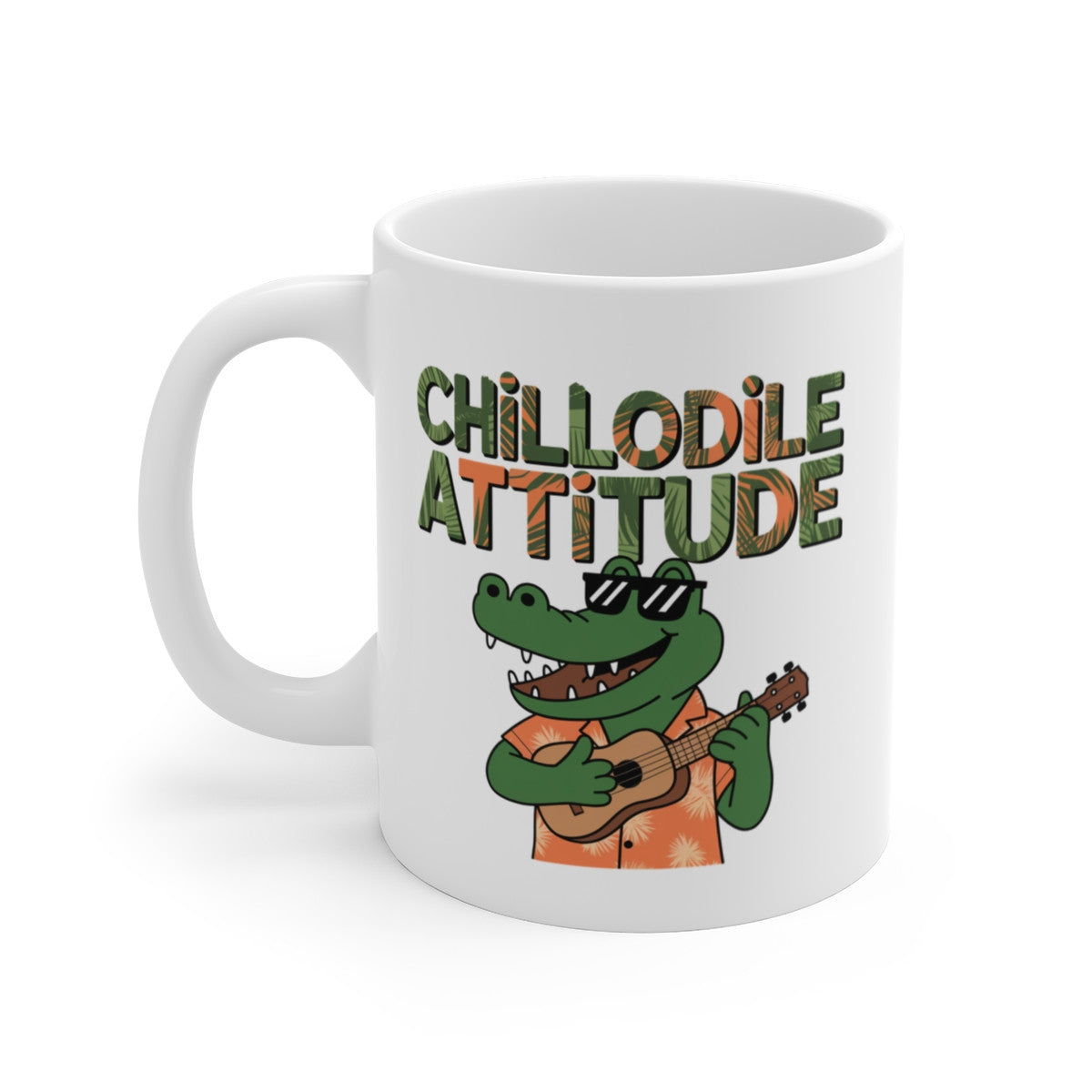 Mug Chillodile Attitude Tasse Drôle Crocodile Cool Guitare  Tropicale Relax Humour Cadeau Original Musique Zen