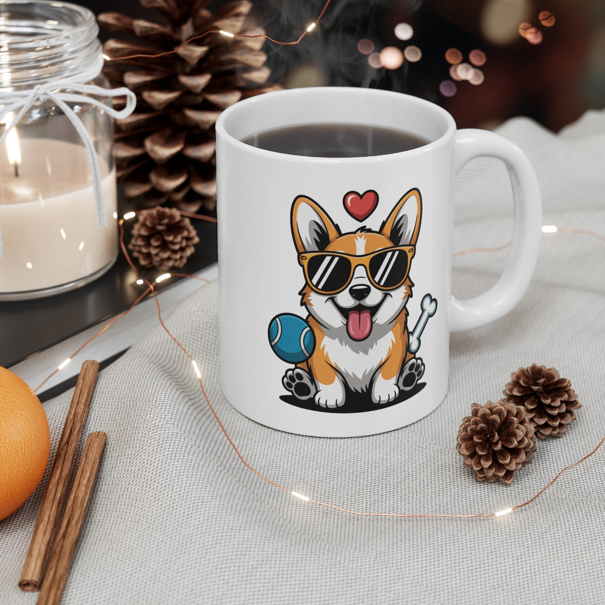Mug Corgi Lunettes Noires Tasse Chien Cool 325ml idée Cadeau pour enfant et adulte