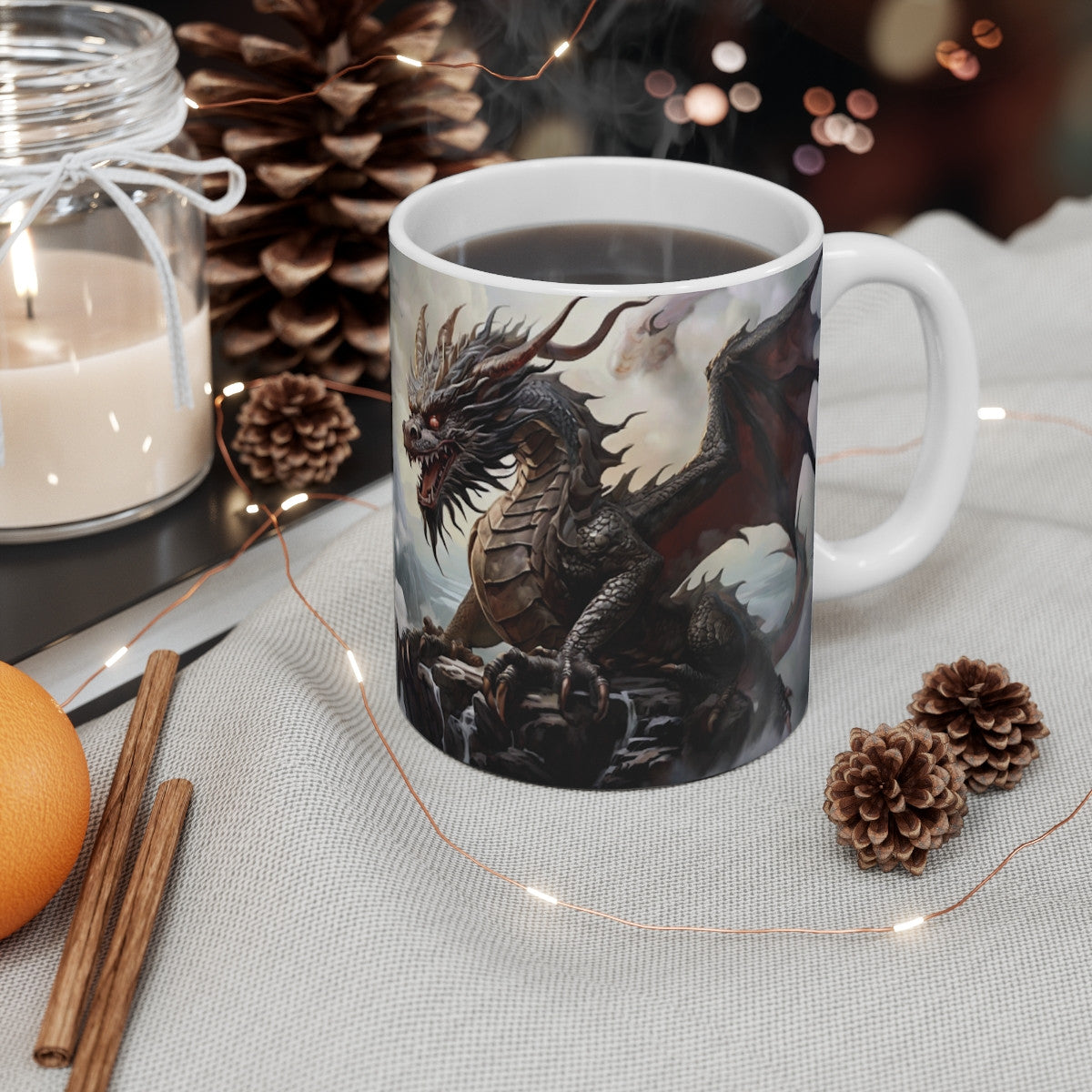 Mug Dragons Guerriers Affrontement Fantastique Épique Cadeau Geek Médiéval Illustration Fantasy Créature Mythique