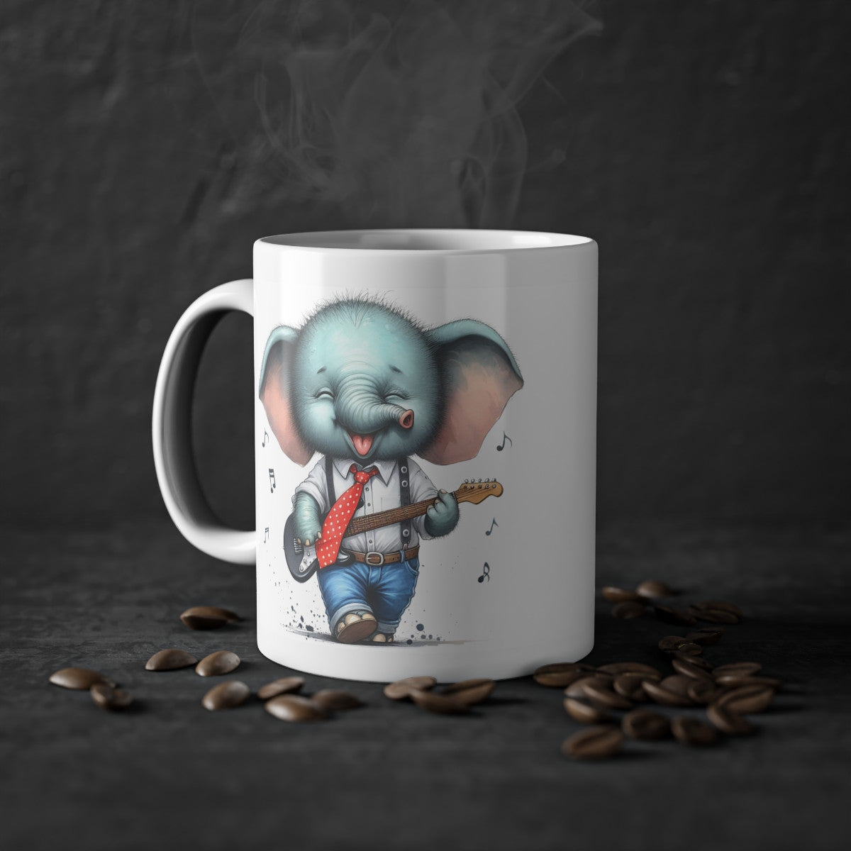 Mug éléphant avec une guitare idée cadeau humour drôle amusant pour enfant et adulte