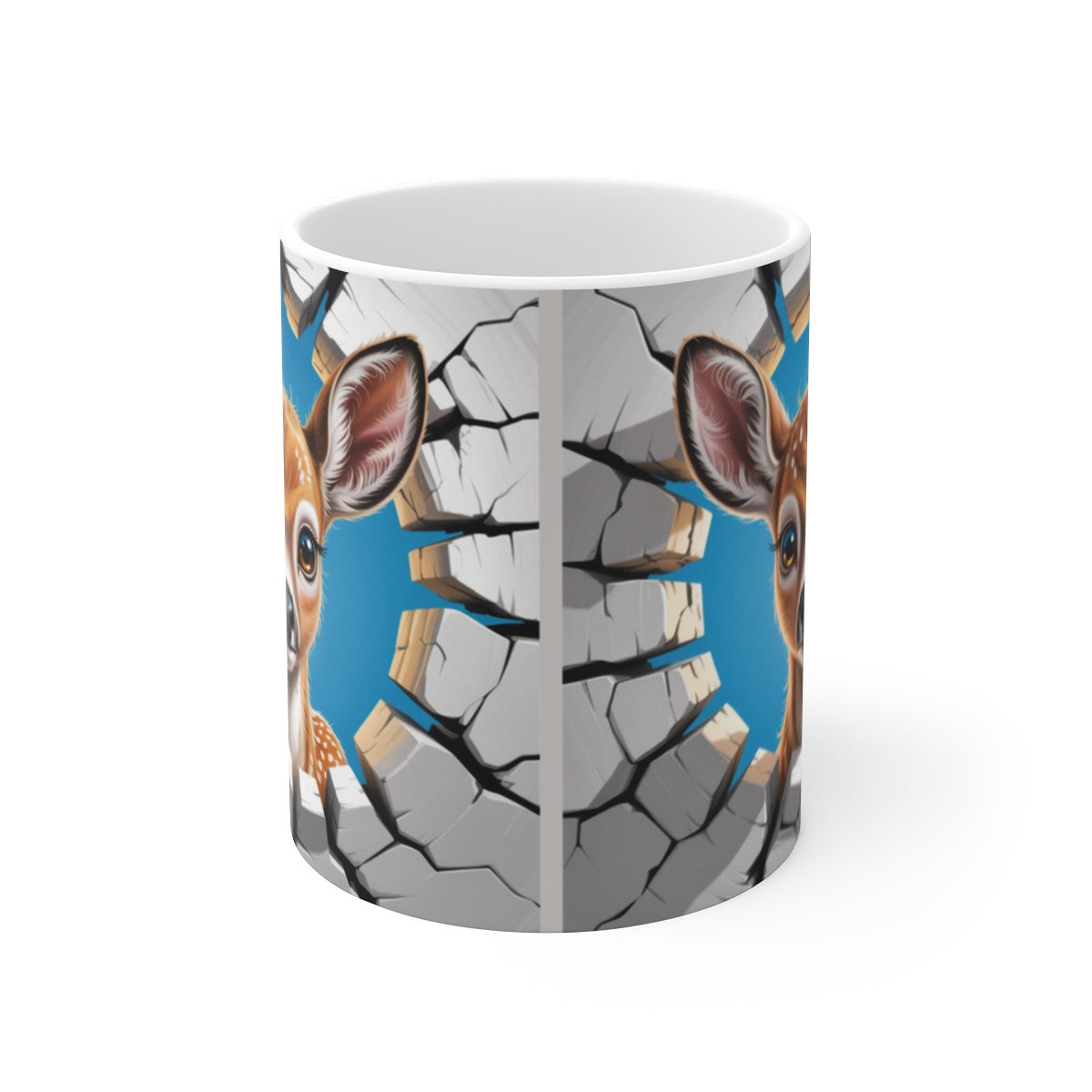 Mug Faon 3D  Tasse Bébé Cerf Cartoon Effet Mur Cassé  Cadeau Nature Douceur et Forêt 325ml