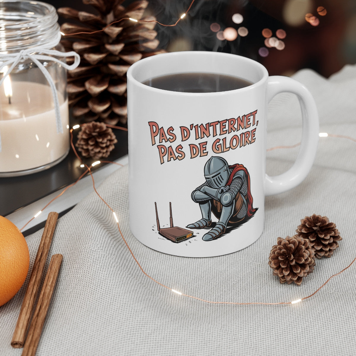 Mug Geek Drôle Pas d’Internet, Pas de Gloire Tasse Humour Chevalier Développeur, Geek ou Collègue