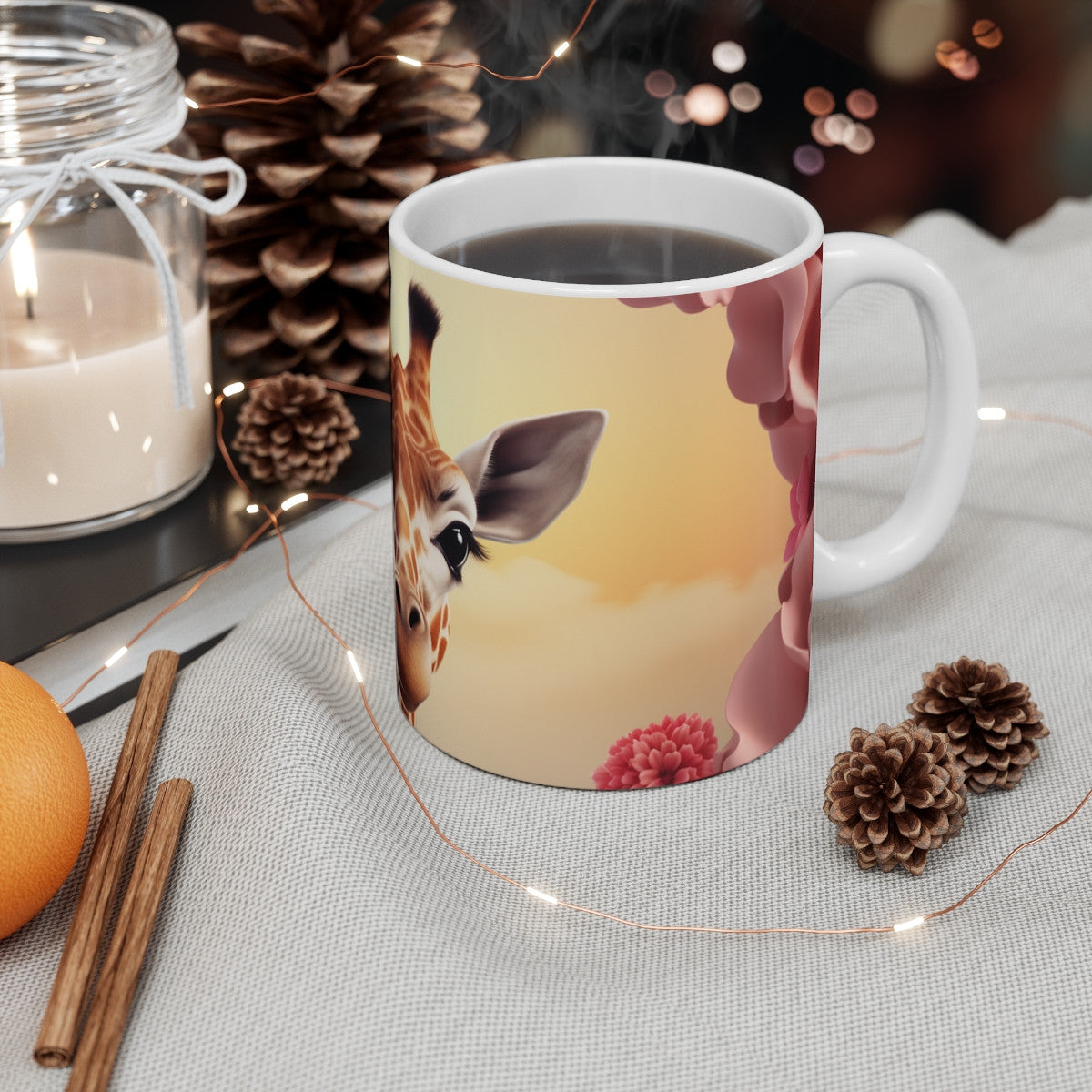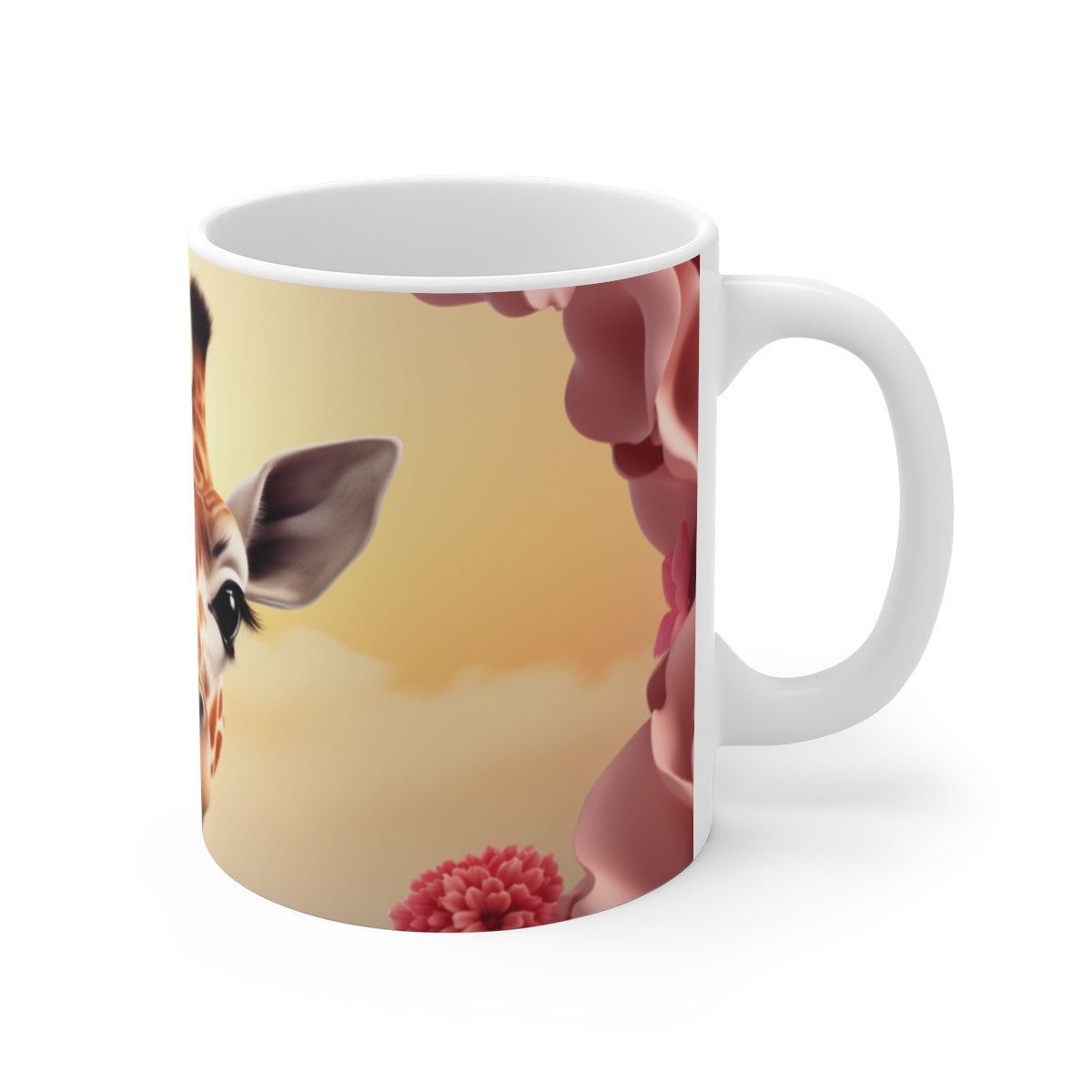 Mug Girafe Fleurie llustration Poétique avec Fleurs Roses et Oiseaux Animal Mignon, Cadeau Féminin Tendre