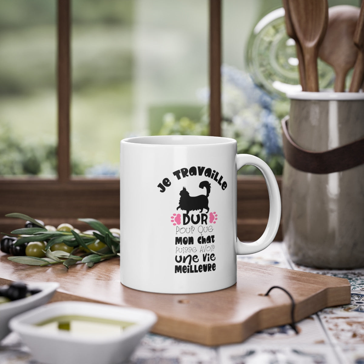 Mug Humour Chat Je travaille dur tasse céramique amour drôle idée cadeau originale anniversaire femme homme fille garçon 325ml