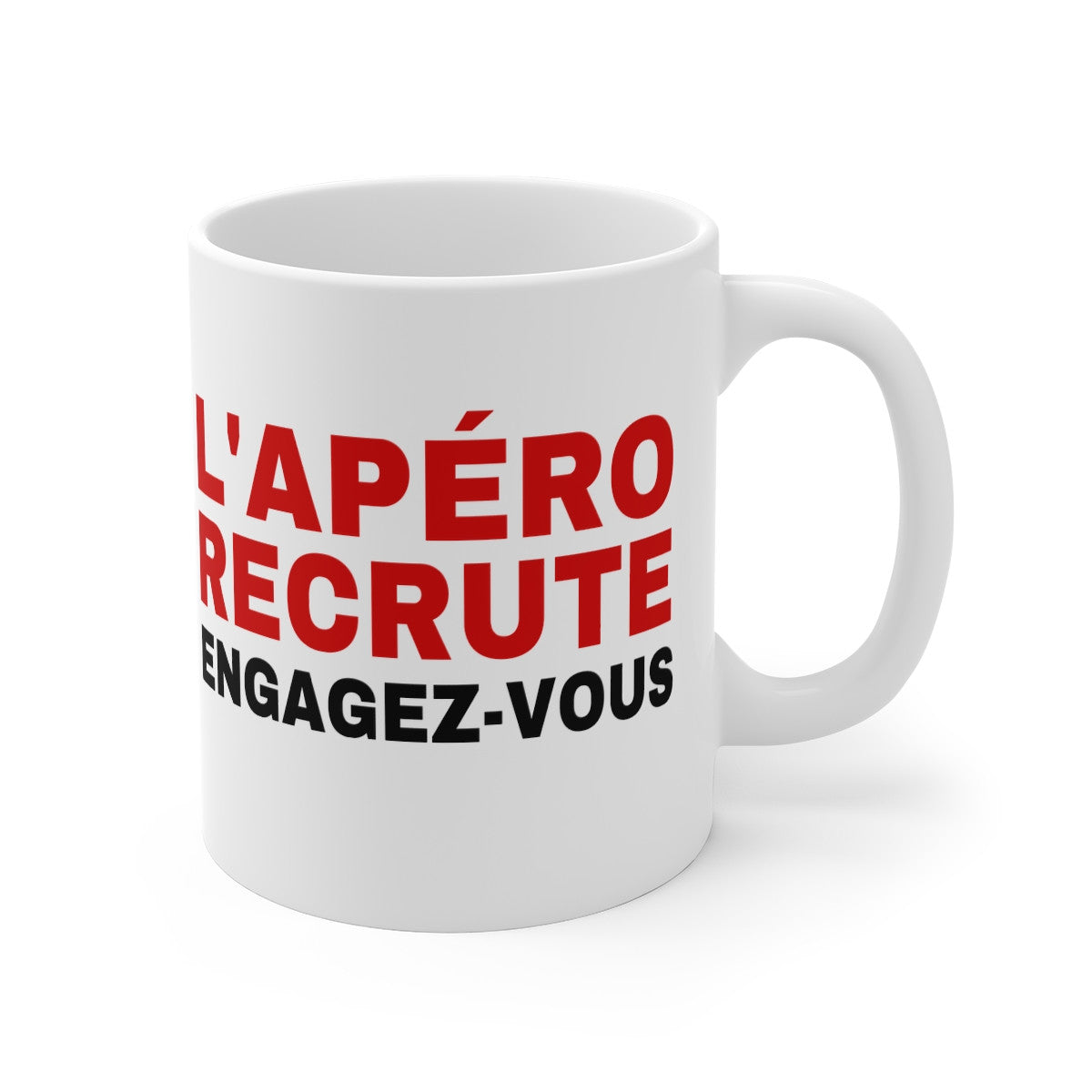 Mug Humour "L'apéro recrute, engagez-vous" – idée cadeau drôle