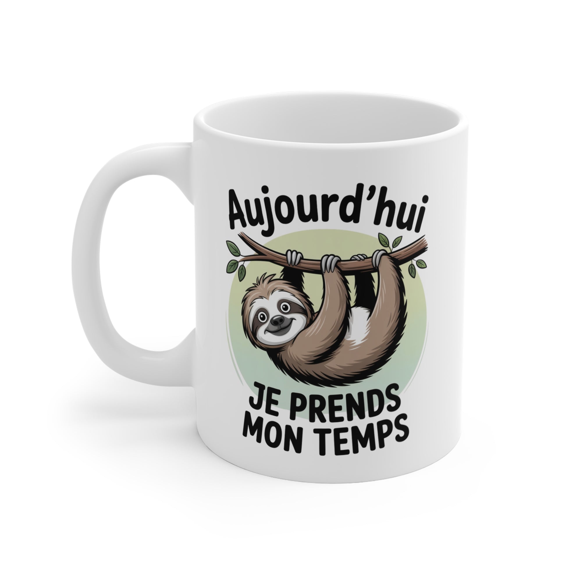 Mug Humour Paresseux – Tasse Céramique 325ml Sloth « Je prends mon temps » – Cadeau Détente Relax