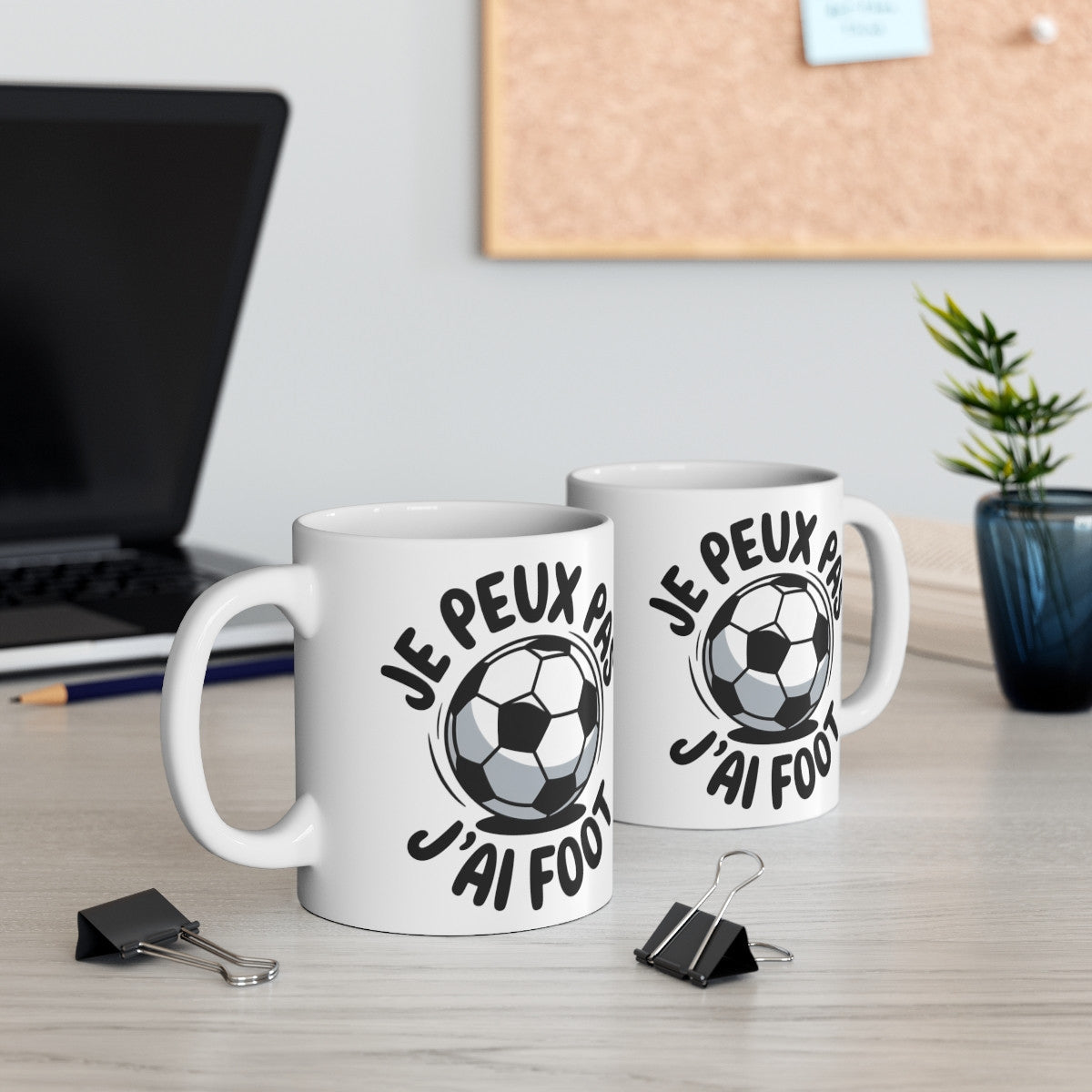 Mug "Je Peux Pas, J'ai Foot" - idée Cadeau Parfait pour les Passionnés de Football - Design Humour Footballeur