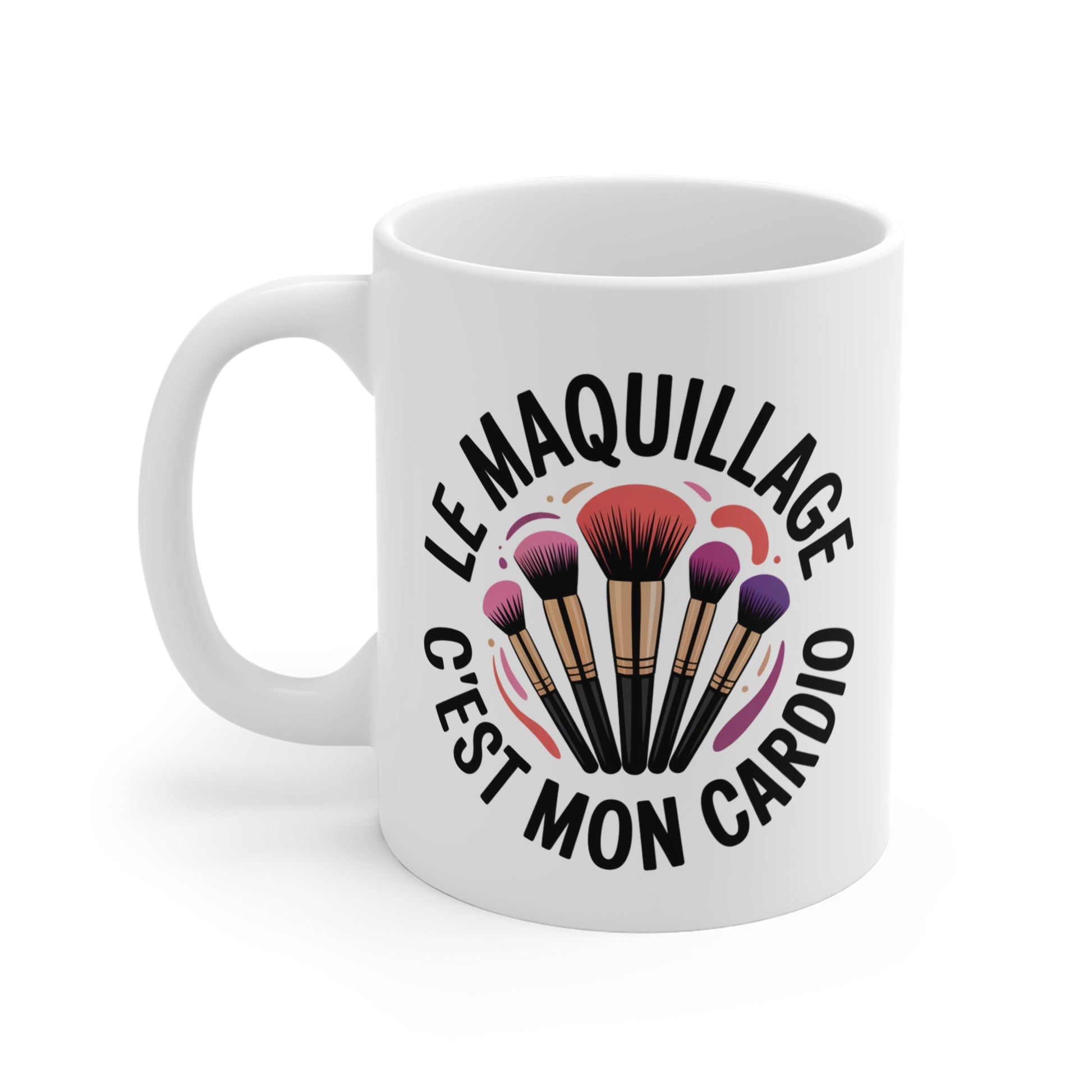Mug Maquillage – Tasse Céramique 325ml « Le Maquillage C’est Mon Cardio » – Cadeau Beauté