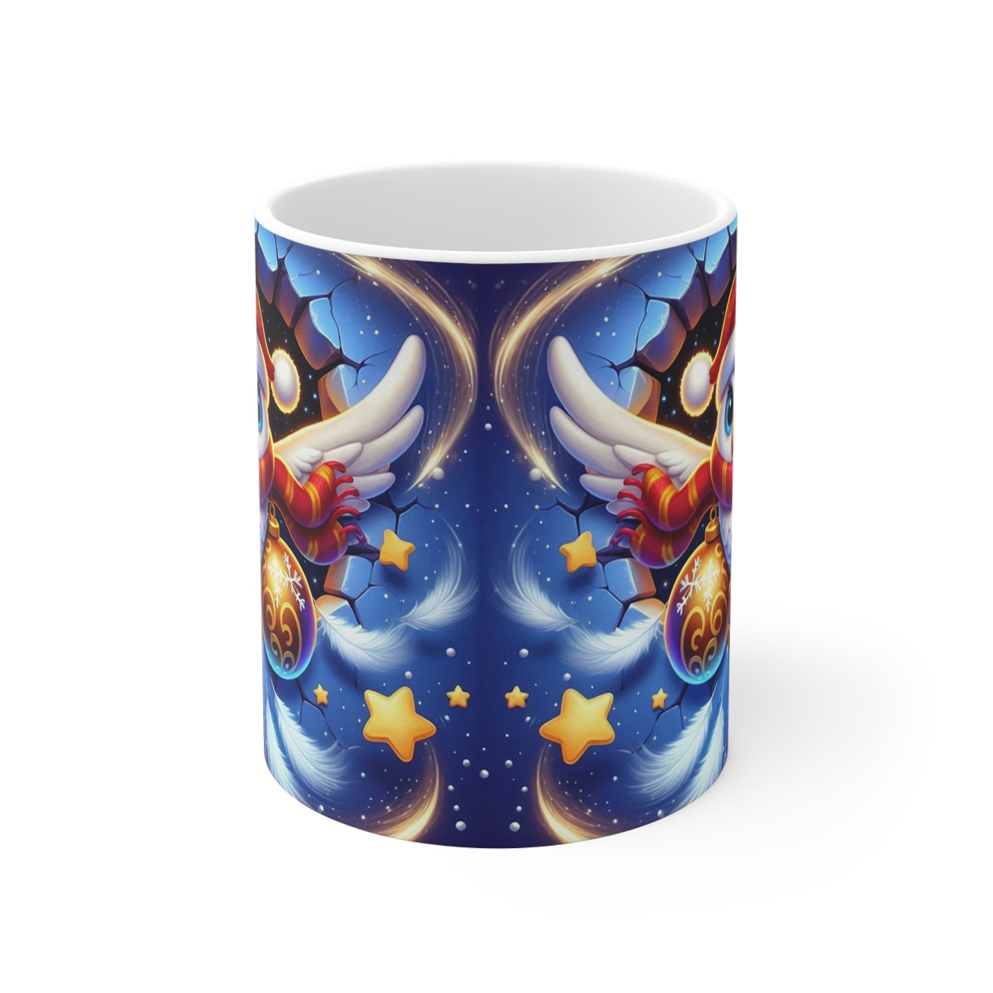 Mug Noël 325ml – Chouette Blanche Festive avec Écharpe Rouge et Boule Dorée – Tasse Céramique Cadeau Hiver