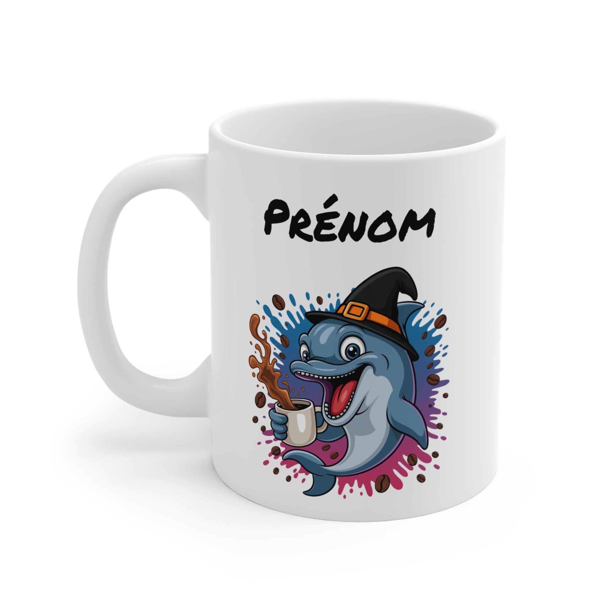 Mug Personnalisable Halloween Dauphin Sorcier – Tasse Prénom Céramique 325ml – Cadeau Fantaisie Café Thé Chocolat Chaud