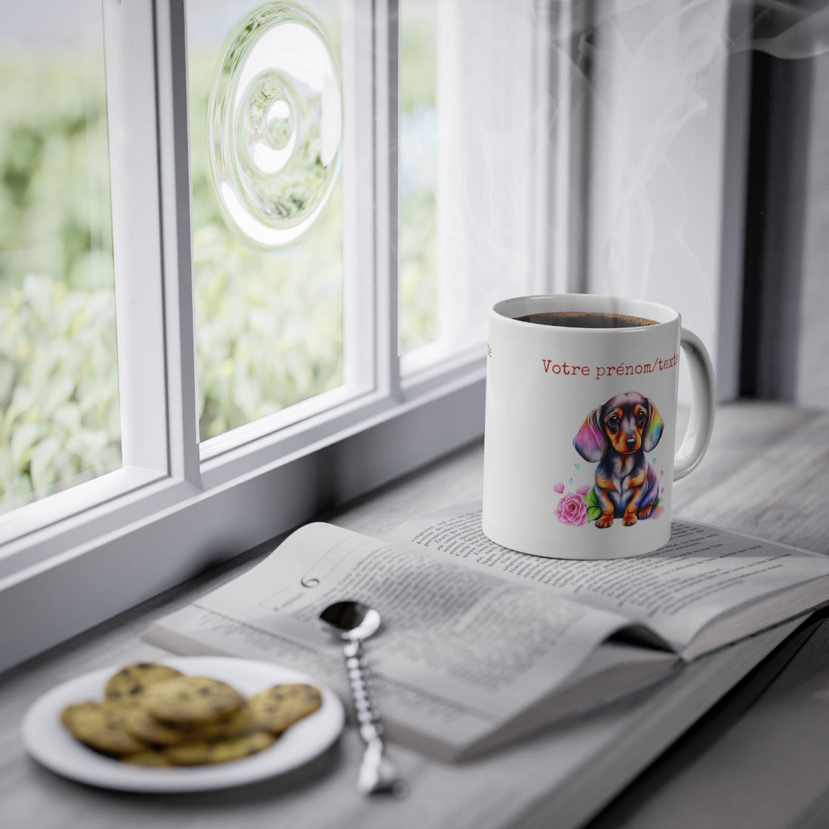 Mug personnalisable personnalisé Chien Teckel avec son prénom ou texte pour enfant et adulte
