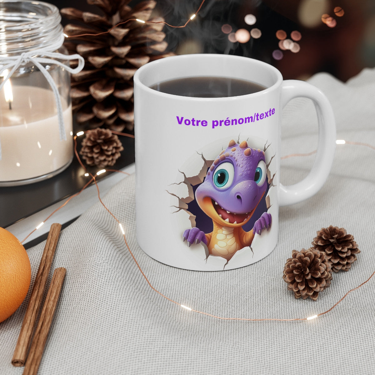 Mug personnalisable personnalisé dinosaure violet avec son prénom ou texte pour enfant et adulte